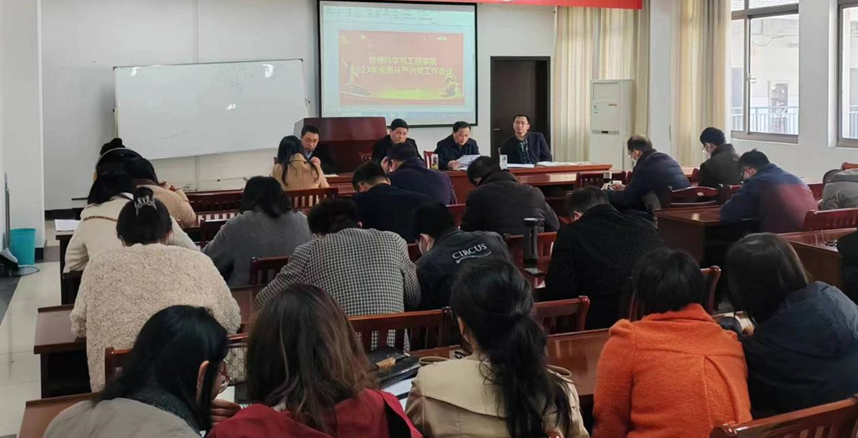 会上,汪春胜带领全体教师学习习近平总书记全面从严治党会议精神,传达学校2023年全面从严治党会精神,部署落实学院2023年全面从严治党工作。他指出,要注重教育预防,全面加强纪律建设,结合主题教育,组织党员干部开展“守纪律 讲规矩 明底线”专题教育,狠抓纪律执行。