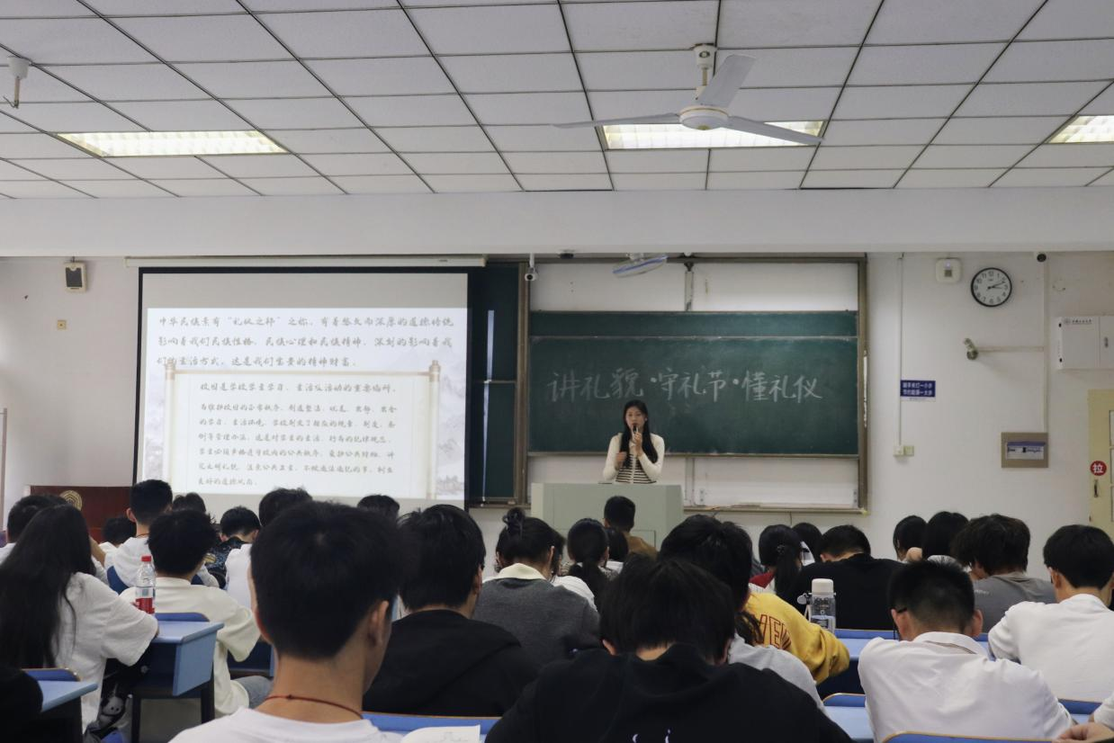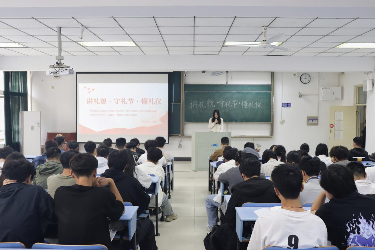 于东教北307开展“讲礼貌·守礼节·懂礼仪”主题宣讲会。活动由第十二届团委学生会主席朱仔仪主讲,各年级学生代表100余人参加。