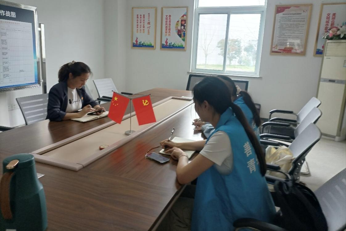 图为实践队员针对崔岗村经济发展对张书记进行访谈 朱仔仪摄