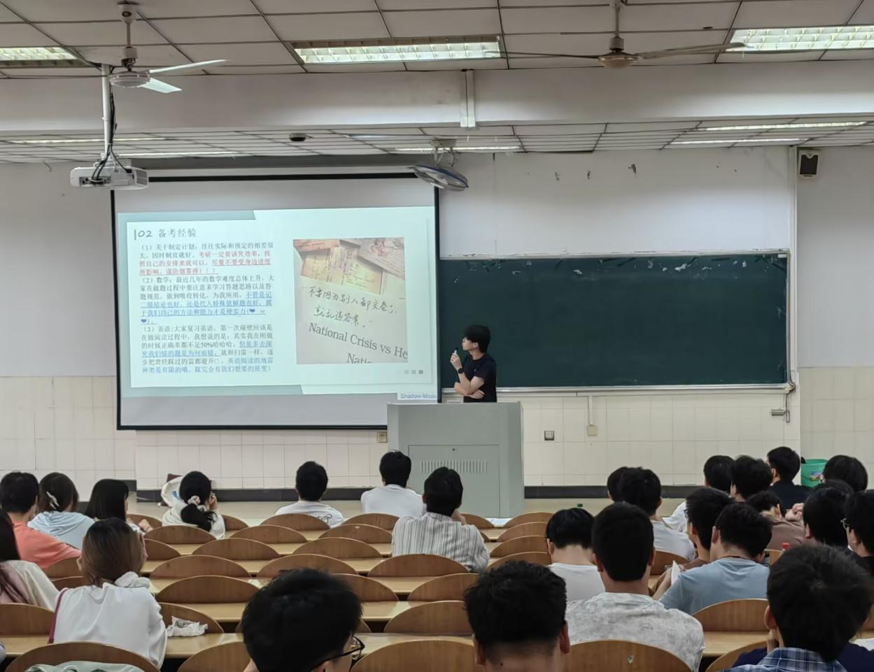 最后,焦朋庆就考研分享进行总结,鼓励同学们考研过程中合理制定学习计划、提高学习效率、注意心态的调整、持之以恒才能在激烈的竞争中脱颖而出。本次分享会为2022级备考学生提供诸多参考,同时也为他们指明方向。