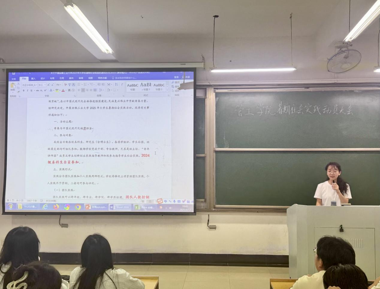 在汇文楼D112举办暑期社会实践动员大会,院团委副书记李军慧,学院各年级班长、团支书参加此次动员大会。