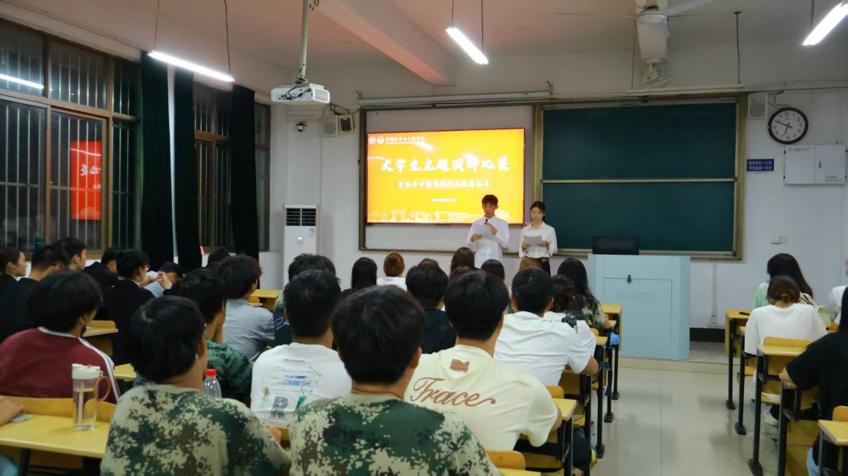 在教D101举办“青春为中国式现代化挺膺担当”主题演讲比赛。2025级辅导员李思雨及团委学生会部长代表担任评委。