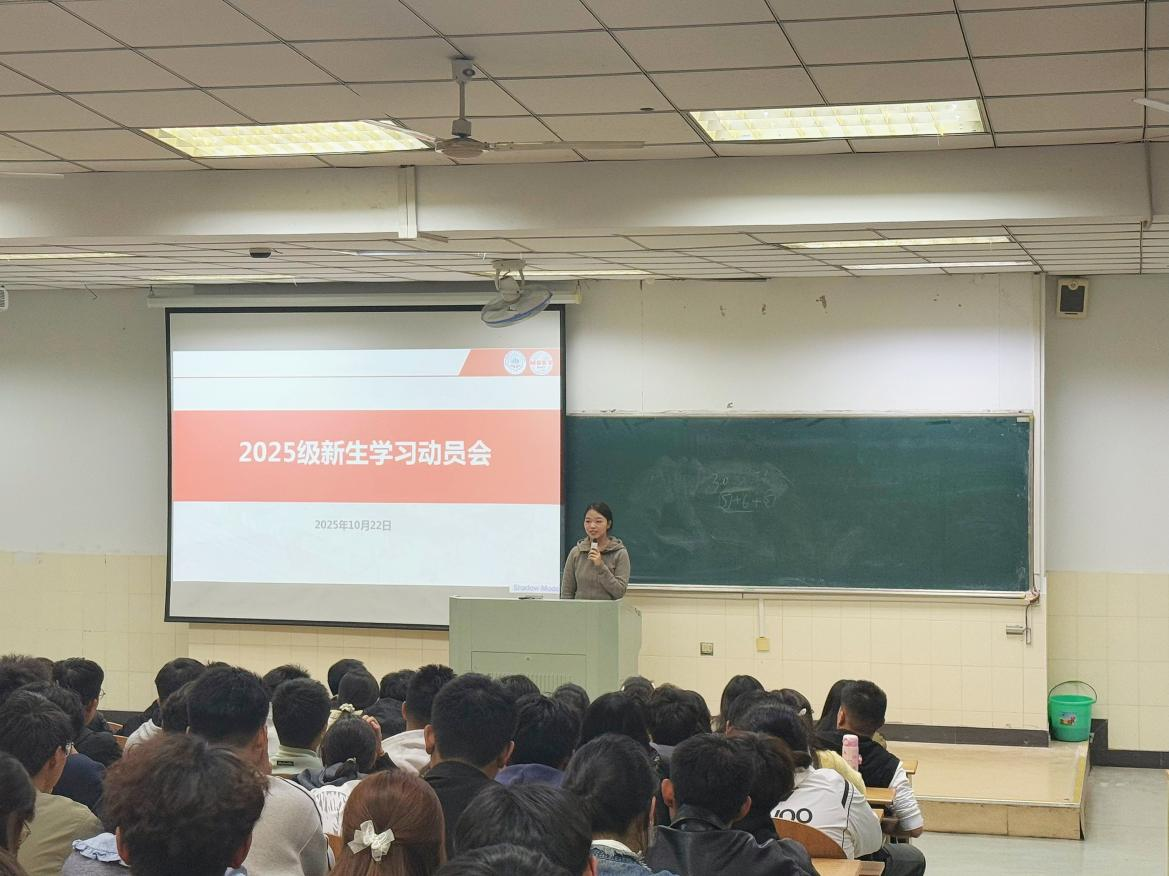 在阶教201召开2025级新生举办学习动员会暨职业生涯规划第一课。2025级新生辅导员任静、李思雨及全体新生参会,共同开启大学学习新征程。