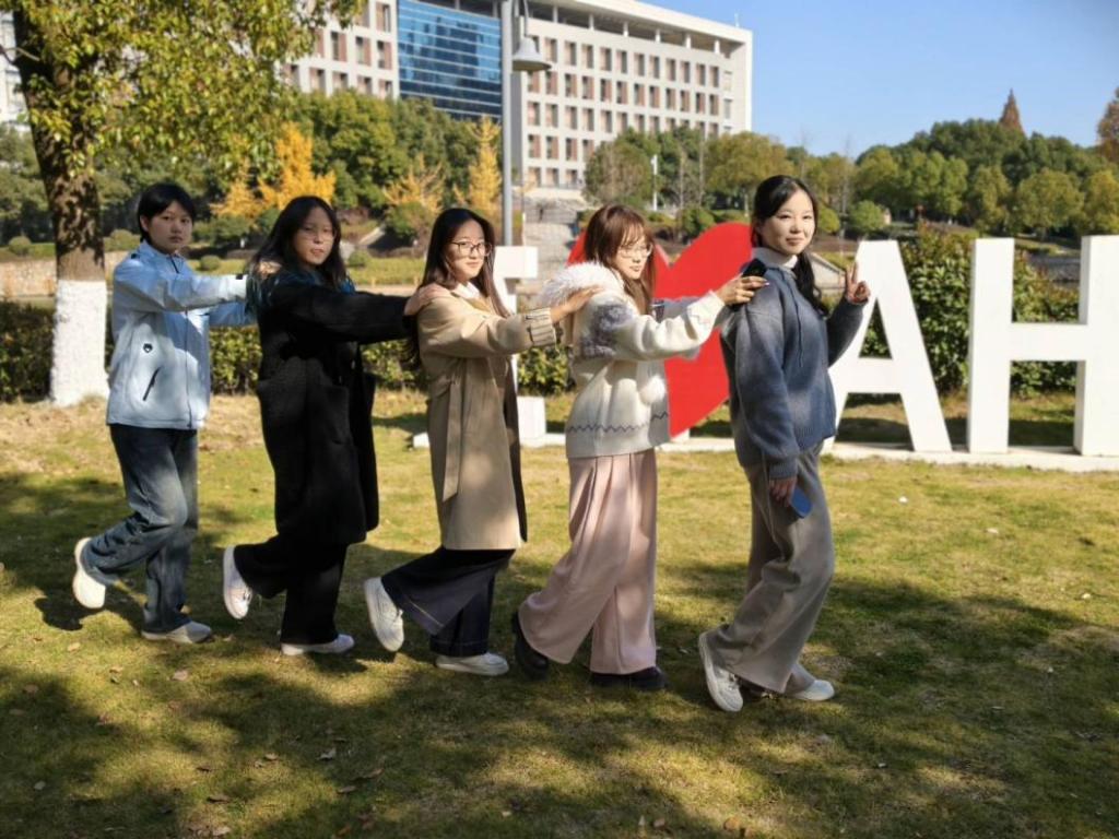 本次活动以校园打卡的方式进行,工作人员提前整理并发布校园特色角落的线索照片,参与者按要求组建队伍,前往指定地点完成创意姿势的合影任务。在寻觅打卡点的过程中,参与本次活动的同学以“手拉手环绕”“集体跃起”等方式定格团队默契瞬间,充分展现学院青年的青春活力与良好的团队协作精神。数应253班刘宇浩感悟道:“这个活动让我和不熟悉同学迅速热络起来,同时,一起寻找打卡点、设计拍照姿势让我倍感集体的力量和温暖!”
