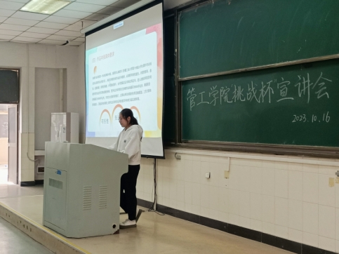 宣讲会上,张林溪介绍了2024年“挑战杯”大学生创业计划竞赛的基本情况。她从参赛对象及要求、参赛作品类型、参赛时间节点和流程、以及近年学院学生获奖情况等方面进行了详细解读。同时,梳理了备赛各阶段注意事项并进行提醒,希望同学们在赛事参与中,以赛促学,树立崇尚科学、追求真知的意识。