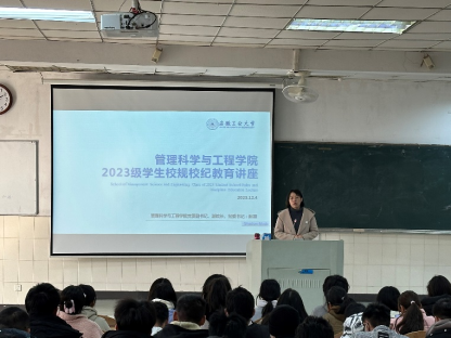 于12月4日下午在阶教101开展2023级校纪校规教育讲座。讲座由学院党委副书记、副院长、纪委书记赵颖主讲,2023级辅导员及全体学生参与此次讲座。