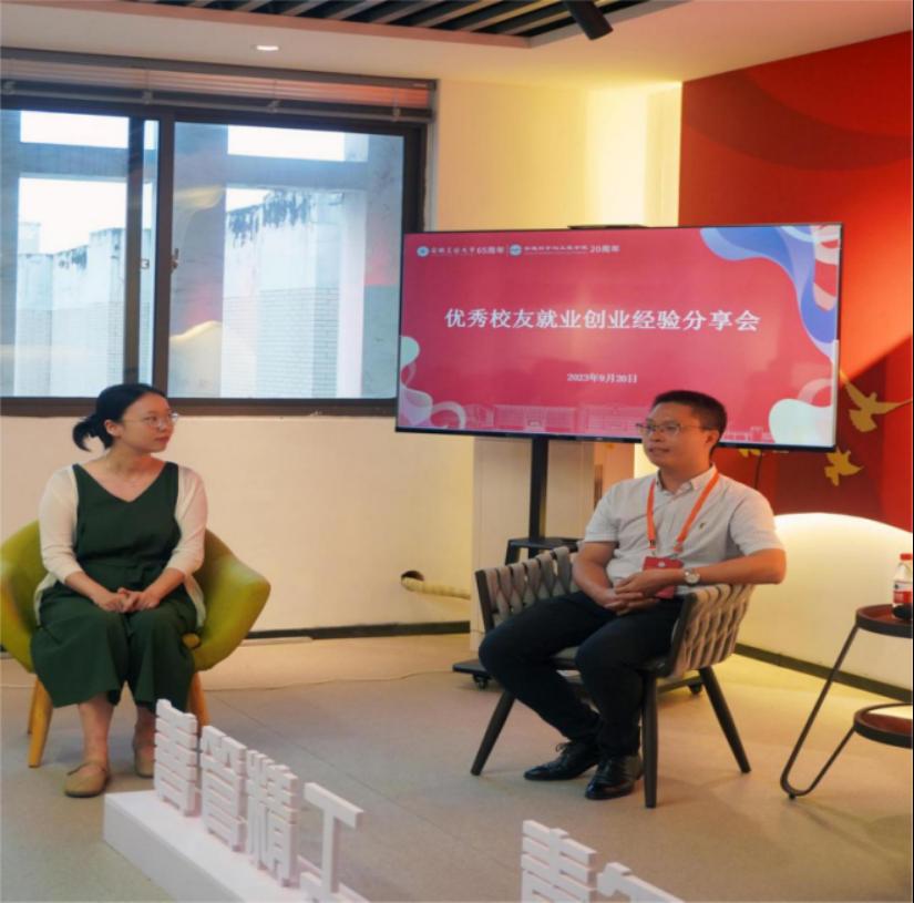 会上,程秋冬讲述了自己的职场经历,提醒同学们在职场上要正确认识自己的价值与能力、摆正姿态、寻找适合自己的岗位,强调了团队协作能力和自我管理能力的重要性。陈华希望同学们在学术科研方面要敢想敢为,“科学研究没有捷径,有想法就要去做,哪怕是‘高难度’的课题,大胆猜想,反复实验。实验,失败,再实验……看似枯燥的循环,实则是在摸索中不断积累。千里之行始于足下,关键在于坚持。”她建议同学们应尽早明确职业生涯规划,做到事事有计划,努力实现人生价值。陈志栋分享了自己从初入职场到决心创业获得成功的经历,他鼓励在场同学们要勇于面对困难,积极寻找解决问题的方法,同时要有坚持不懈的精神;他还回顾了自己在校担任学生干部的故事,表示母校的学习生活经历对自己思维提升和处事方式给予了很大的帮助,同时为母校的发展变化感到由衷的高兴。王翔分享了在校期间攻读双学位的经历,建议同学们应充分利用时间,储备各类知识和技能,不断提升综合素质,他鼓励同学们只有自身专业技能扎实,才能在未来工作中昂首挺胸,不惧困难。