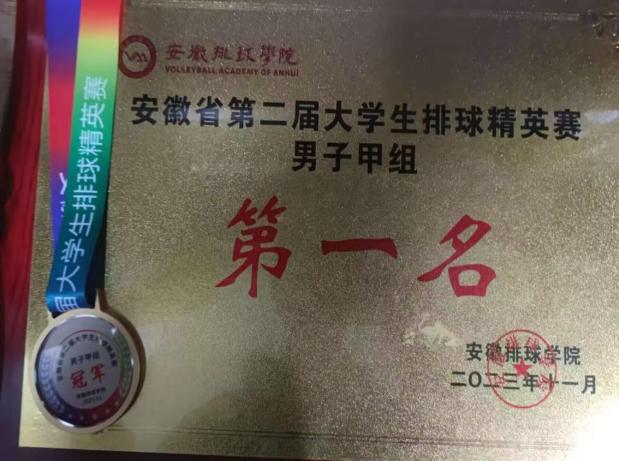 邵晨雨、程佳峰、宋金雨、骆政洁、郑博宇5位同学随校队出行,并获得安徽省第二届排球精英赛男子甲组第一名的好成绩。