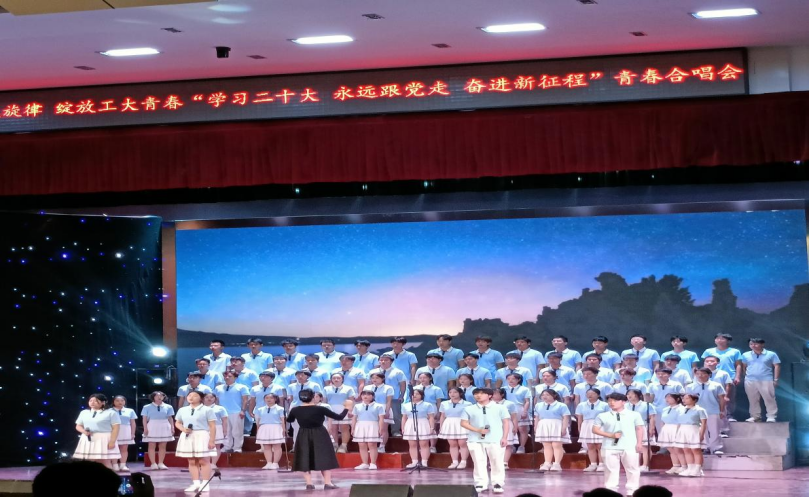 4月22日晚,后宫电影院 “学习二十大永远跟党走奋进新征程”大学生合唱比赛在秀山校区大学生活动中心举行,共有十四支学院代表队参加比赛。