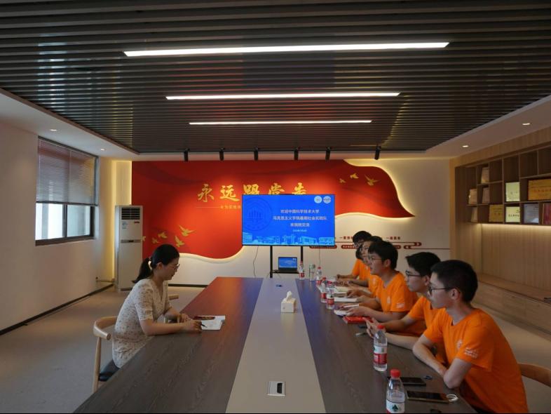 刘瑜对中科大暑期社会实践队的到来表示欢迎,随后带队员们参观了样板支部活动室。在实地的调研交流中,刘瑜介绍了样板支部建设的“微党课”和“节日思政课”,并将支部的“七个有力”和“五育并举”相结合的实际案例进行了介绍。接着,双方就学生党支部思想政治教育工作、组织生活开展巩固走、发展党员工作和党支部委员会建设工作四个方面展开交流,在介绍样板党支部先进的经验和做法的同时,双方还就如何利用支部工作同学生成长成才相结合等问题展开了氛围热烈的讨论。