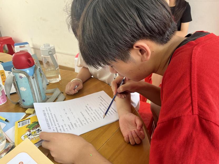 图为实践队员为孩子讲解问卷。中国青年网通讯员 王芬妮 摄