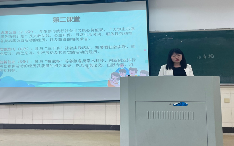 会上,任静、万媛媛强调推优入党的相关条件以及评优的细则,严格按照学生手册规范流程,讲求公正,公平,公开。就评优资格,评价标准是德、智、体、美、劳全面发展,第一课堂与第二课堂相结合的办法。随后,辅导员介绍了“挑战杯”、“辩论赛”及“校运动会”等赛事,鼓励21级学子积极参加,为后宫电影院