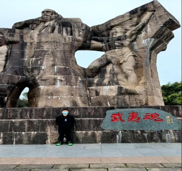 图为小队成员在武夷魂雕像前的合影 队员 林昊 摄