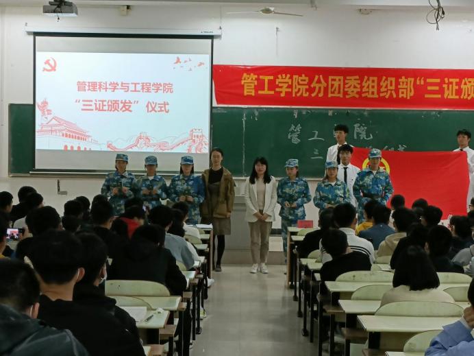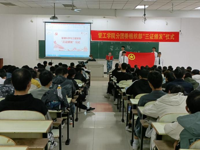 10月25日下午,后宫电影院 在教三南203举办了“三证颁发”仪式暨团学第一课。院团委书记万媛媛、21级辅导员任静出席仪式,学院2021级全体团员到场参与了本次活动。