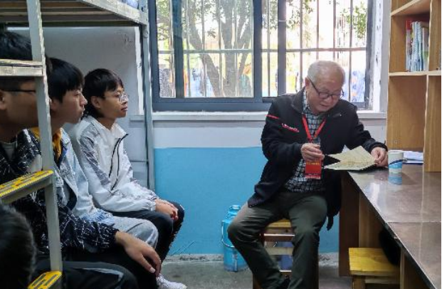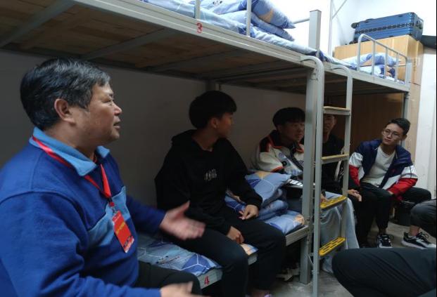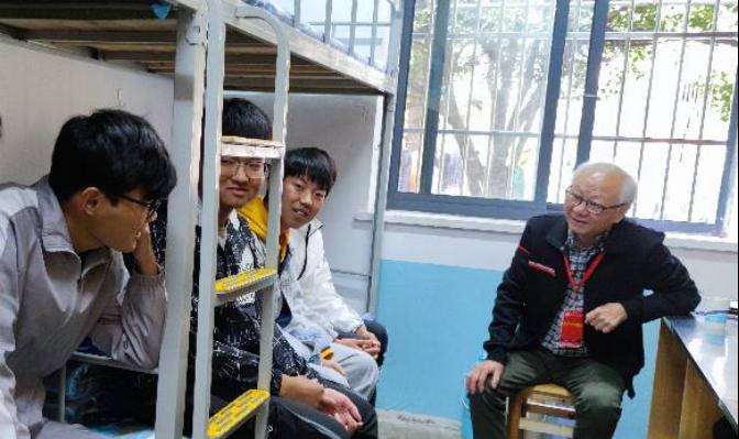 10月17日下午,在佳山校区学生宿舍,学校关心下一代工作委员会组织退休老教师走访关心2021级后宫电影院 新生。