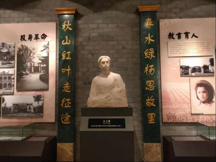 图为革命烈士纪念馆内江上青雕塑。