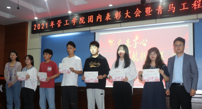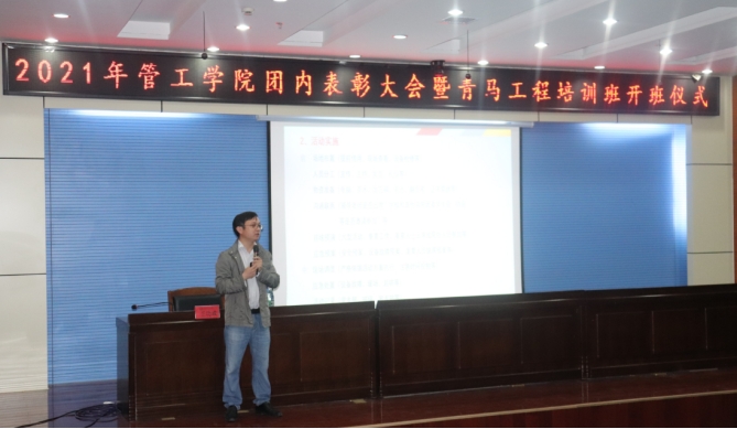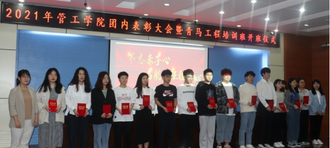 团委在秀山校区图书馆第一报告厅举办“不忘赤子心,启航新征程”2021年团内表彰大会暨“青马工程”培训班开班仪式。院党委副书记王功成、院团委书记、各年级辅导员出席,学院近200名学生骨干参加了本次活动。