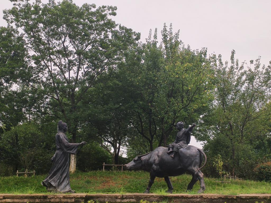 (图为“牧童遥指杏花村”雕塑,为景区著名景点之一。)