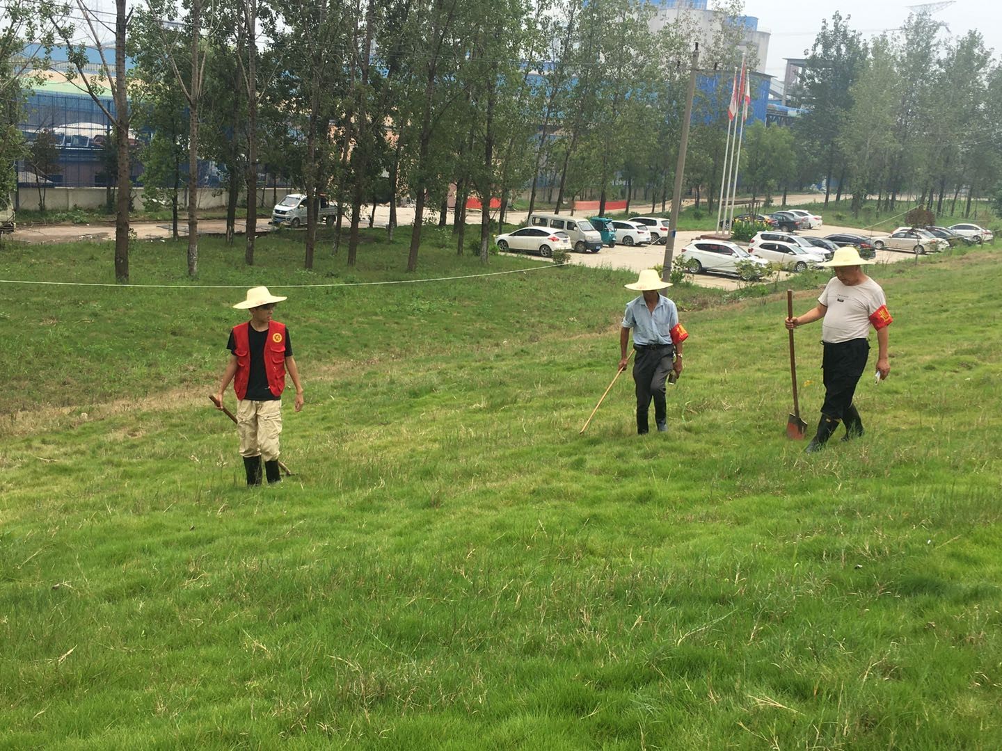 (图为张桢在送水情报告和检查散浸点)