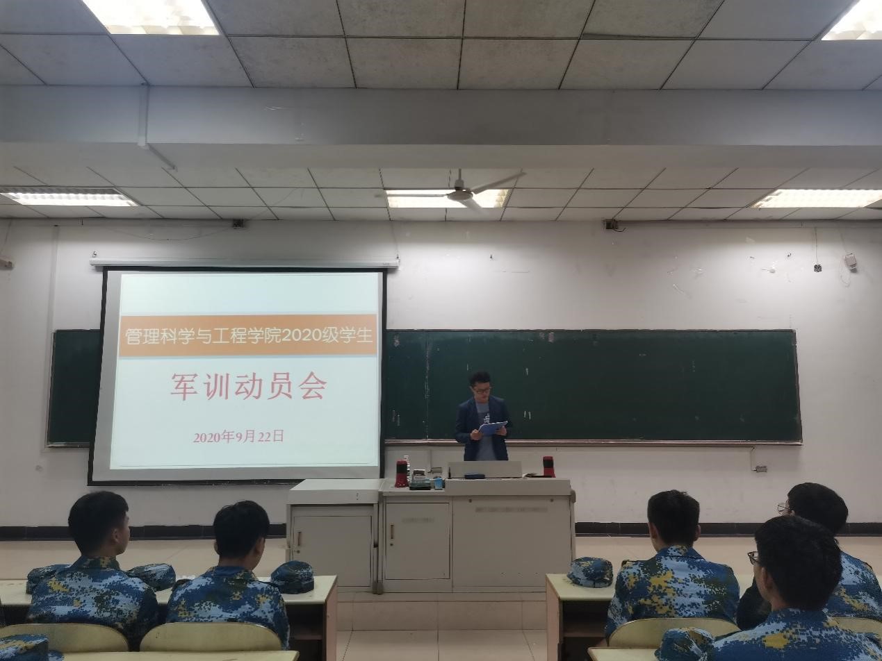 于教三南103召开了新生军训动员大会。院党委副书记王功成作军训动员讲话,学院2020级全体新生参加。本次大会由2020级辅导员杨金星主持。