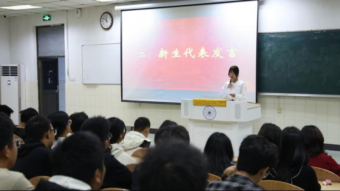 会上,工243班傅中晨作为新生代表发言。分享自己在军训期间的成长与感悟,并表示今后将以军训为起点,以坚韧不拔的精神和顽强拼搏的意志为动力,不断提高自己各方面的能力。