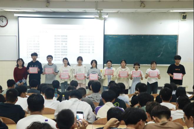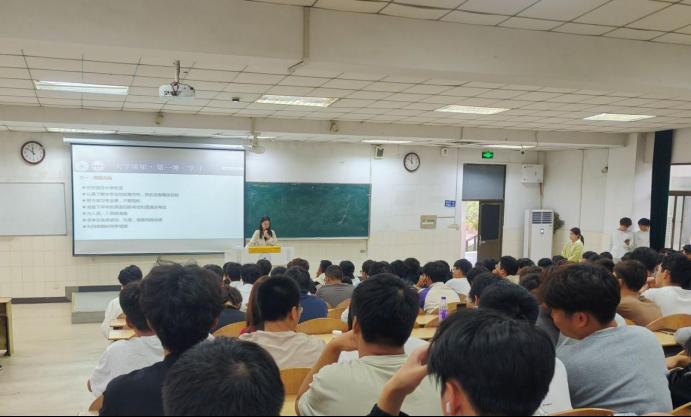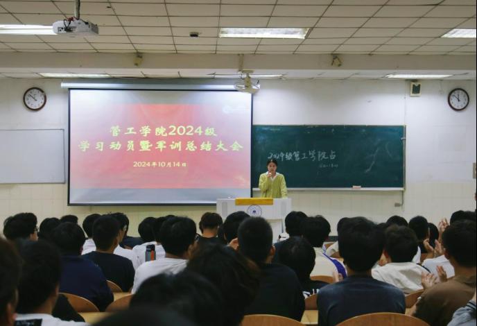 在阶教101召开学习动员暨军训总结表彰大会。会议由2024级新生辅导员李军慧主持,学院党委副书记、副院长、纪委书记赵颖、学院团委书记赵玉婷、2024级新生辅导员孙如梦以及全体2024级新生参与本次会议。