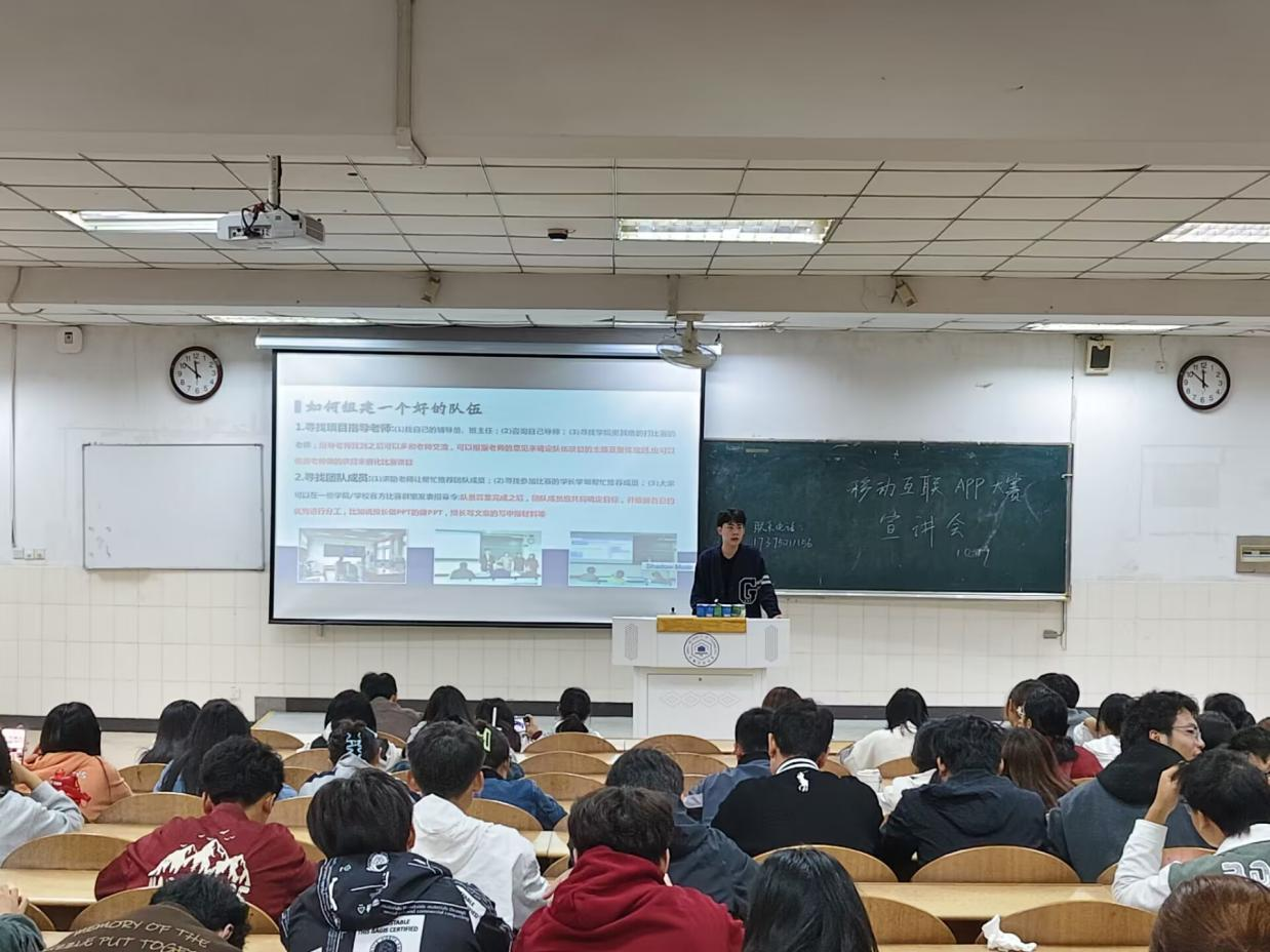 会上,宣讲人首先介绍了本次赛事背景,明确了参赛条件、参赛要求,并就参赛作品的报送格式、队伍组建、项目规划和答辩细节等方面进一步说明与补充。随后,宣讲人结合往届优秀参赛作品对赛事关键细节进行阐述解读,鼓励同学们积极拓展创新思维,主动联系生活实际,紧密结合专业知识,真正做到学以致用、以赛促学。
