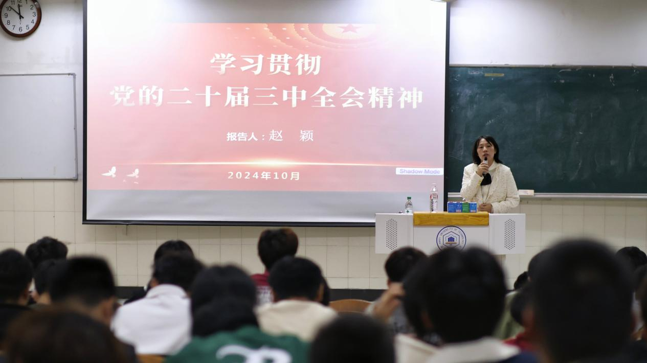 党委副书记、副院长、纪委书记赵颖开展了“党的二十届三中全会精神宣讲”主题教育活动,全体2024级新生参加活动。
