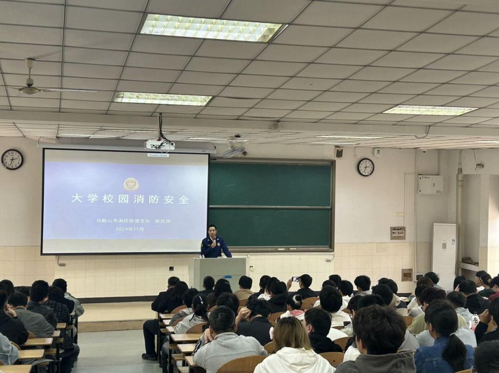 于东阶202开展消防安全知识专题讲座,马鞍山市消防救援支队工程师杨武洲主讲,学院各系室、支部负责人,各年级学生代表400余人参加了本次讲座。
