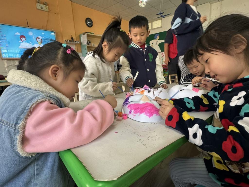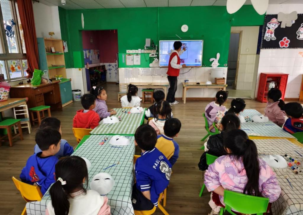 “青青星火·汇聚童心”——守护童年志愿服务队联合金瑞社区在大风车幼儿园开展“童绘脸谱,传承国粹”彩绘京剧脸谱志愿服务活动。