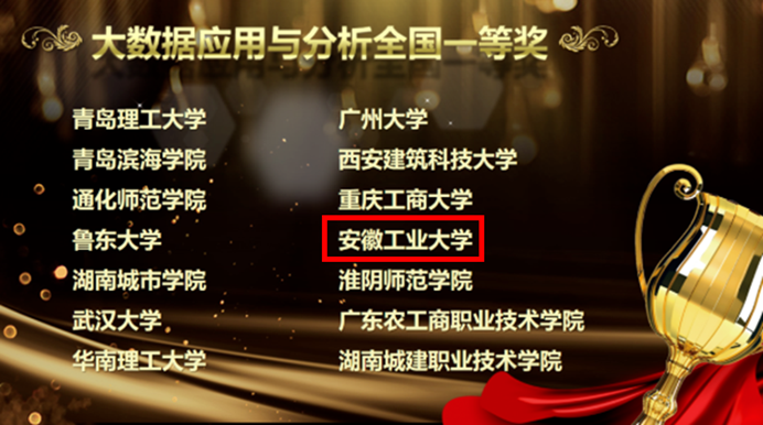 陈梦凯老师、杨金星老师指导的由邓祖星、洪锦、桂华君、朱晗、刘童组成的五人组代表队,凭借新颖的想法、广阔的思路,出色的演讲、积极的应变得到了评委们的一致认可,最终荣获大数据分析与应用全国一等奖的好成绩。
