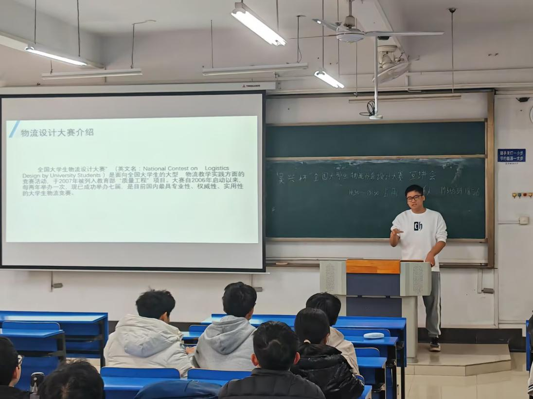 在教D207举办“新青年吴兴杯”第九届全国大学生物流设计大赛专题宣讲会。活动由物流思创园协会负责同学杨乐担任主讲。