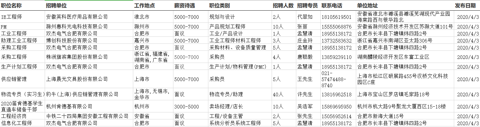 【就业一线】4月3日-4月5日就业信息更新