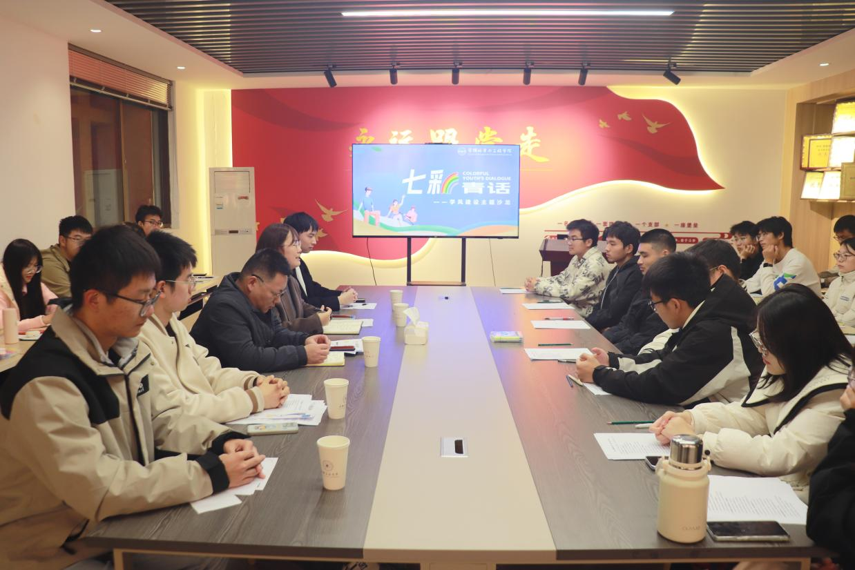 在汇文楼A502举办第七期“七彩青话”师生面对面活动。院教学副院长张洪亮、院团委书记赵玉婷、2025级新生代表等50余人参加活动。
