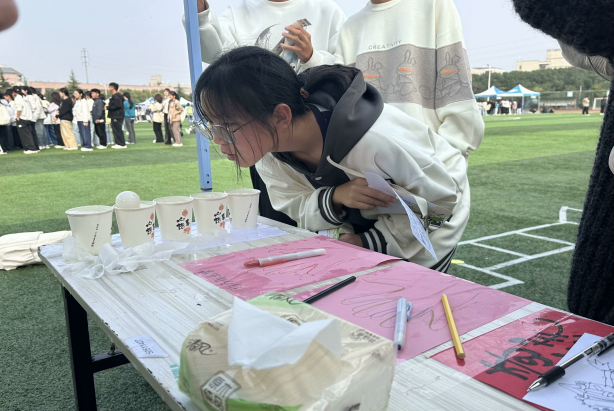 本次活动学院策划设计了“神笔马良”“乒乓球过水杯”“我最会甩了”“铅笔奇趣连线”“火眼金睛找不同”以及“请和我击掌”等多项富有创意和挑战性的游戏。活动现场,同学们积极参与,相互协作,共同完成任务,促进了彼此间的交流与理解。“神笔马良”项目中,同学们通过团队协作,利用绳子控制笔端,合力书写指定词组;“我最会甩了”项目中同学们通过甩掉便利贴的方式,寓意甩掉烦恼与压力,让参与者在游戏中释放自我;“铅笔奇趣连线”则通过连线图案的方式,锻炼了同学们的细致与耐心,现场欢声笑语不断。同时,学院还为每位参与者准备了精美的拒绝焦虑小卡和工大手绘卡贴,以此传递关爱与温暖,鼓励大家关注心理健康,关爱自我。