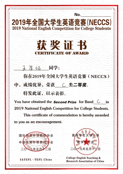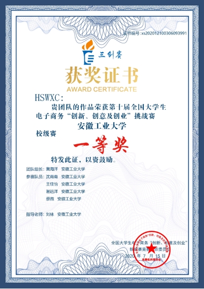 信息管理与信息系统专业2018级本科学生。前三学年综测排名专业第2,获得校一等奖学金2次,二等奖学金1次,校三好学生3次,英语四六级均530+,大学期间积极参与各项学科竞赛,并获得多项国家级、省级等奖项。以第一作者身份发表核心期刊论文1篇,以第一发明人身份获批实用新型专利1项。于2021年暑期共参加多所高校的暑期夏令营活动,并获得2所985、4所211高校“优秀营员”的荣誉称号,最终被华中科技大学拟录取。