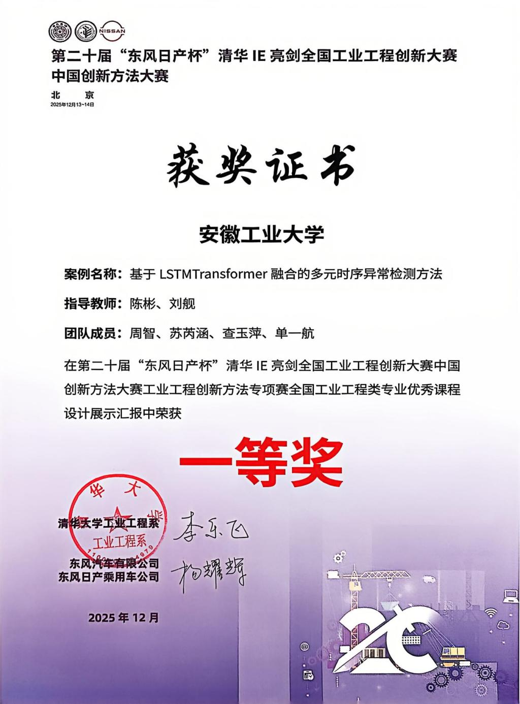 参赛团队立足工业实际应用场景,针对工业生产过程中普遍存在的多元时序数据异常检测难题,创新性地将LSTM(长短期记忆网络)与Transformer注意力机制进行融合建模,构建了一种兼顾时序建模能力与全局依赖捕捉能力的异常检测方法。该方法在提升异常识别准确率、降低监测延迟以及增强模型稳定性等方面表现突出,为工业流程智能监测与风险预警提供了具有实践价值的解决方案,获得评委专家的一致认可。