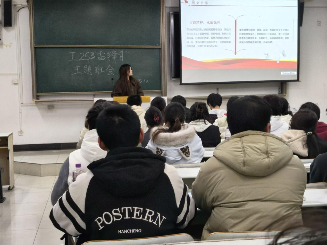各团支部紧紧围绕“学雷锋精神、做时代新人”主线,依托主题班会开展专题学习,通过PPT、视频等形式,系统学习雷锋事迹,深入解读雷锋精神的时代内涵。团支书带领同学们重温《雷锋笔记》,诵读经典篇章,结合榜样故事分享与志愿服务倡议,引导学生深刻体悟雷锋精神的现实意义。交流中,同学们一致表示,要将崇高理想信念融入日常学习生活,以实际行动践行雷锋精神。同时,活动将理论学习延伸至现实场景,各班级自主组织开展校园文明引导、环境清扫等志愿服务,推动雷锋精神内化于心、外化于行。