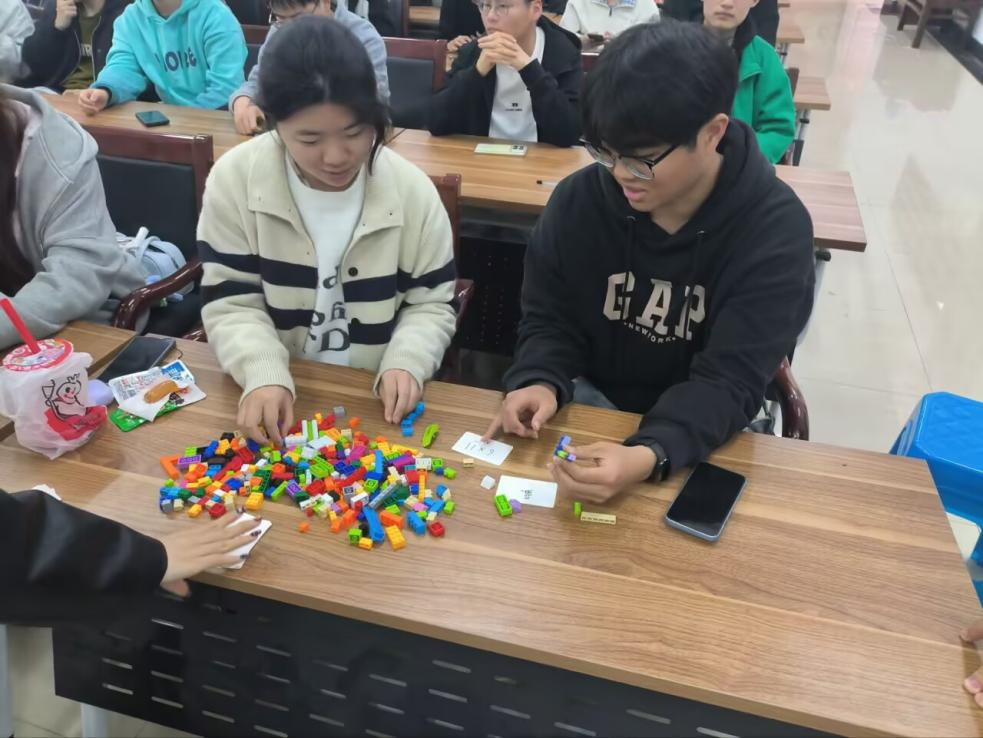 活动前期,工作人员围绕工业工程专业知识要点、比赛流程规范及各岗位角色职责细致讲解,加深同学们对比赛基本情况的了解。活动开始后,参赛学生以2至3人为一组,分别扮演生产员、质检员、物流员等角色,在10分钟内完成乐高积木组装任务。过程中,各团队需灵活应对设备故障、原料短缺、工程变更等突发状况,在紧张的赛程中考验团队配合与问题解决能力。比赛结束后,各团队进行活动复盘,队员们结合线平衡率、标准化作业等专业理论,深入剖析比赛中生产延误的原因,共同探讨流程优化、产线布局调整的有效方案,在交流研讨中实现专业知识的再学习、再提升。