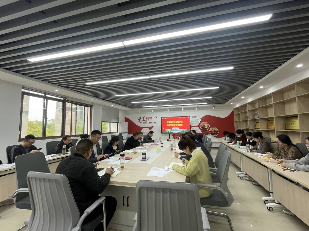 随后,与会人员围绕各专业课程思政开展情况展开深入研讨。各系室主任、支部书记结合学科专业特色,就分类推进课程思政建设、推动思政元素与专业教学深度融合、加强课程思政案例建设、健全系室集体研讨机制等重点工作,分享了各自的工作思路与实践经验。大家一致认为,要立足管理科学与工程学科特点,深入挖掘专业课程中蕴含的思政元素,将价值塑造、知识传授与能力培养有机融合,实现润物无声的育人效果;各系室今后要进一步健全集体研讨制度,定期开展课程思政教学设计交流,以教学竞赛为抓手、以优秀案例为引领,充分激发全体教师参与课程思政建设的积极性与主动性。