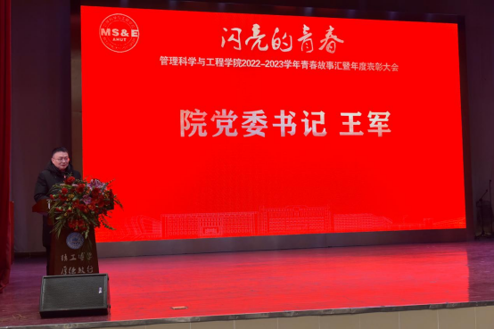 院党委书记王军代表学院为获奖的个人与集体表示祝贺,对过去一年管工学子取得的优秀成果表示肯定。王军寄语学子们:一是要胸怀“国之大者”,在青春的航向上高扬风帆。希望同学们,厚植爱党、爱国、爱民、爱社会主义的情怀,树牢报国大志、勇担复兴大任,心系“国家事”、肩扛“国家责”。二是要淬炼“真才实学”,在青春航线中行稳致远。希望同学们充分利用学校多元多维的学习资源,深化拓展自己的知识体系和学术视野,增强自主学习能力、探索性学习能力。三是要矢志“砥砺奋斗”,在青春的航道上乘风破浪。鼓励同学们奋斗是青春应有的姿态,行动是青年最好的磨砺,希望同学们在中华民族伟大复兴中接力奋斗,在担当中历练,在尽责中成长,在新时代的广阔天地中施展抱负、顽强拼搏。