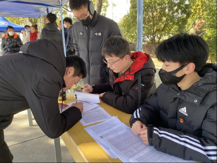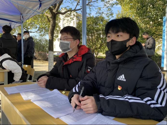 的报到棚下,不难看到信管学生支部的党员们耐心细致的帮助报到学生办理手续。息193班的王志红和钱琦正是其中的两位。他们着党徽,戴口罩,愈发熟练地引导着在值期间遇到的每一位返校报道的管工学子。他们在棚子下值班,这一坐就是半天。信管学生党支部还有一些学生党员也是如此,在返校后积极投身于志愿工作中,接替上一轮值班的同学,为学院学生的返校提供良好的保障。支部依托返校这一大事件,引领学生党员参与志愿工作,以实际行动彰显着党员服务奉献的精神,同时也作为磨练锻炼了支部的学生党员群体。
