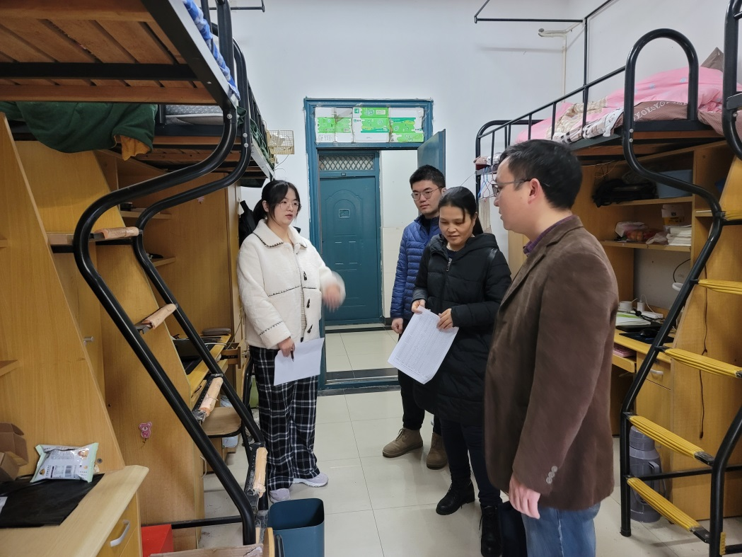 党委副书记王功成、副院长王付宇、辅导员杨卫玲及各班班委深入研究生宿舍,开展宿舍卫生安全大检查。