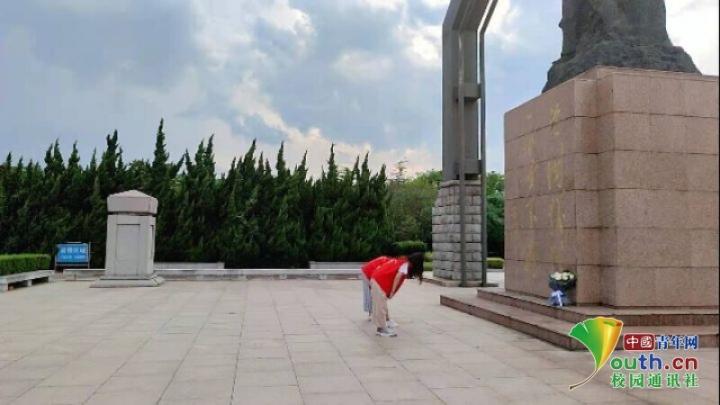 图为实践队员向革命烈士献花鞠躬。中国青年网通讯员方明娟摄