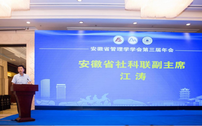 江涛代表安徽省社会科学界联合会对年会的成功举办表示祝贺,为大会致辞。他表示,社科界要围绕经济社会发展中重大理论和实践问题,拓宽研究视野,创新研究方法,不断提升管理学研究整体水平和影响力,为谱写中国式现代化的安徽美好篇章作出积极贡献。