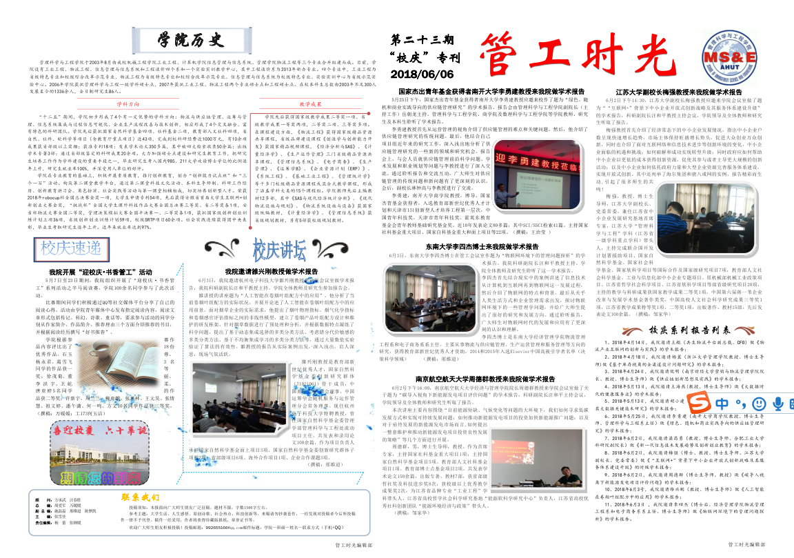 管工时光为后宫电影院 院报宣传平台,负责学院传统媒体报纸的编辑、策划与排版,与月刊、半月刊的形式对后宫电影院 近期重大活动事件进行综合报道,同时根据国家实事推出专刊。特设诗话管工环节,鼓励学生原创诗歌投稿,激发学生创作热情。以下为管工时光第二十三期第一、二版: