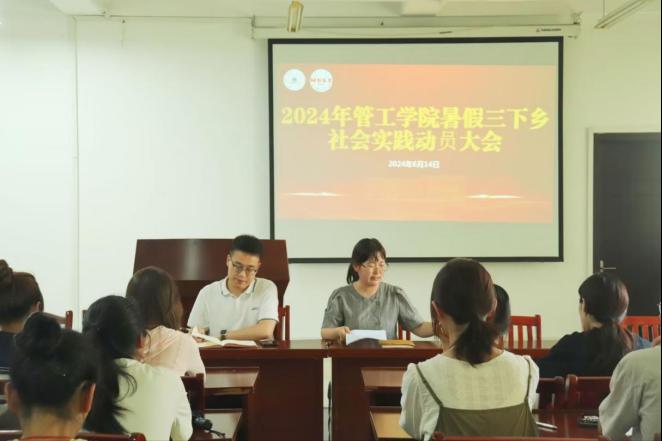 在汇文楼A308会议室召开2024年大学生暑期社会实践动员大会。院团委书记赵玉婷,院团委副书记曹宇,学院各班级班长、团支书参加此次动员大会。